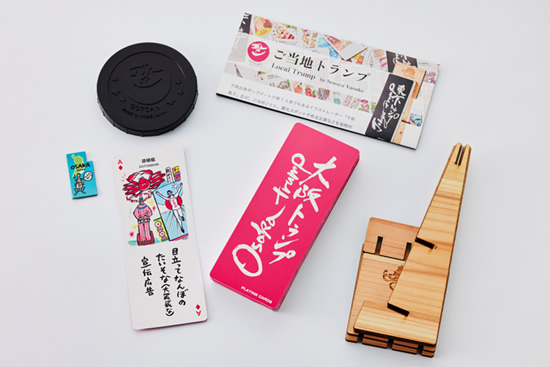ゴトカンの中には、大阪トランプの他、スマホ立てにもなるトランプ台とご当地マグネットなどわくドキグッズが入ってます。